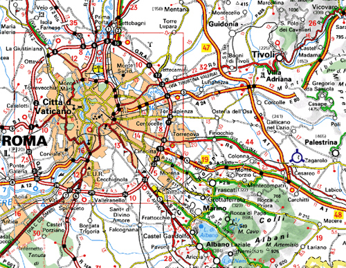 situé à l'est de Rome, à environ 45