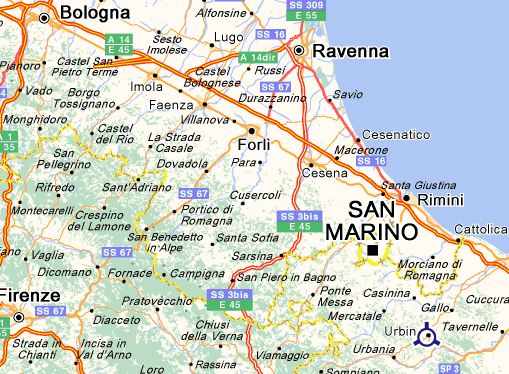 située dans les Marches, à une trentaine de km de Pesaro et de la côte adriatique italienne.